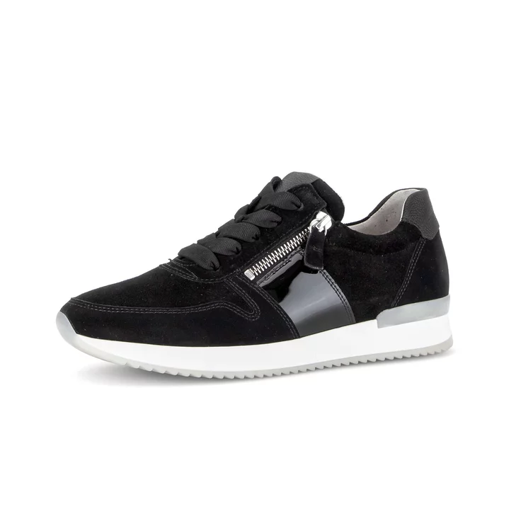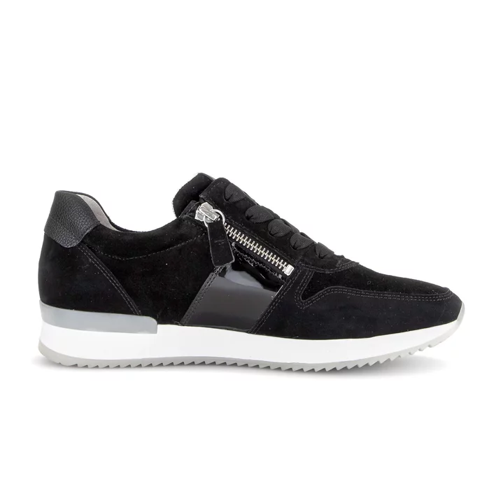 Gabor 83.420.17. Sportieve sneaker in zwart combi met dubbele rits.