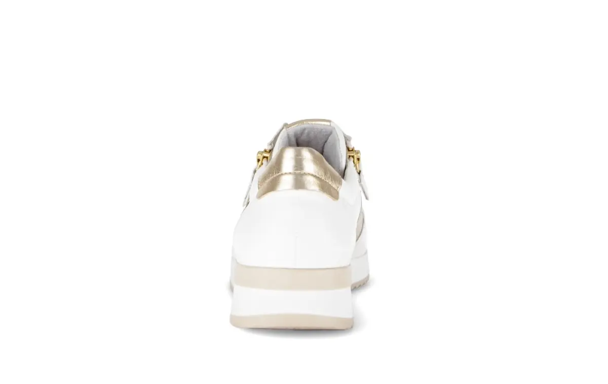 Gabor 83.420.20. Sneaker in wit leer met lichtgoud.